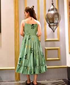 Who said minimal is too basic? have a look at this absolutely beautiful flares midi! its soothing shade and prints add to its grace.