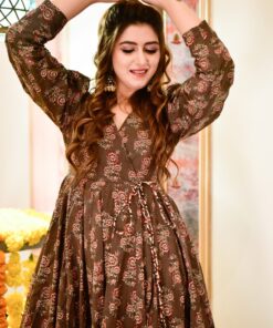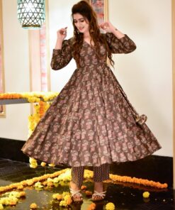 SKU: 10005168980100-mannat-brown-cotton-suit-set Category: