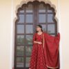 Set your fashion statement to royal as you carry yourself in this elegant ethnic, stunner maroon chanderi floor length dress.!