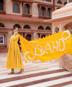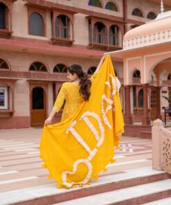 Get your hands on this beautiful yellow customized dupatta set, get any 5 letters embedded on this long flowy dupatta and stand out in the crowd.